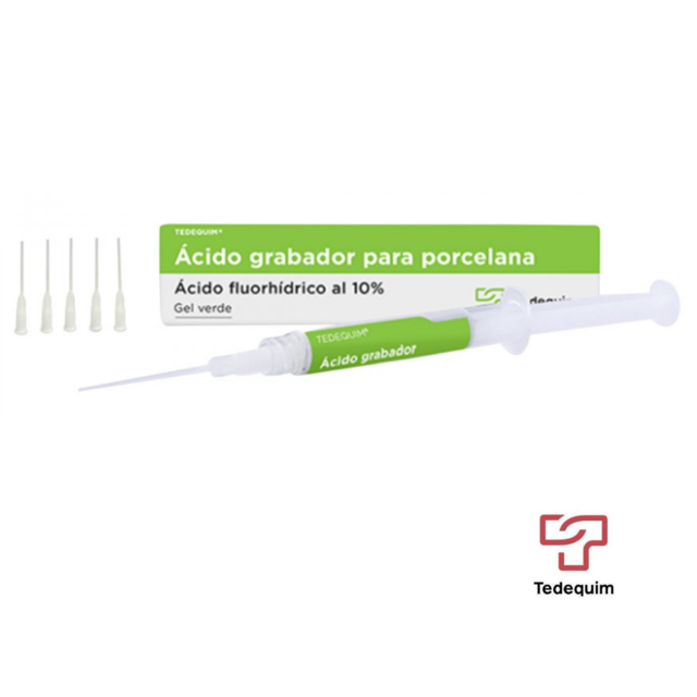El ácido grabador para porcelana en gel, se utiliza para grabar carillas de porcelana, inlays, reparar fracturas de porcelanas en puentes, coronas, onlays, etc.