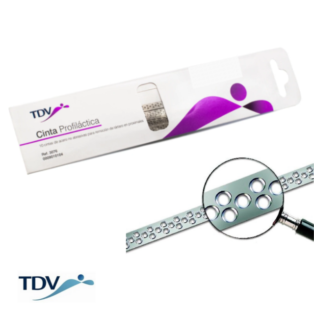 Cinta de acero inoxidable para profilaxis dental.