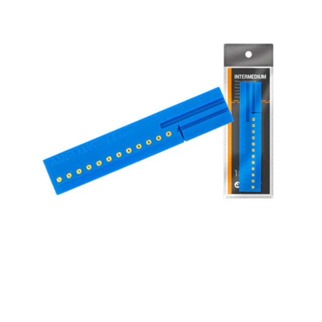 – Regla calibradora de conos de gutapercha. Adecuado para calibrar conos de gutapercha y hacer conos intermedios